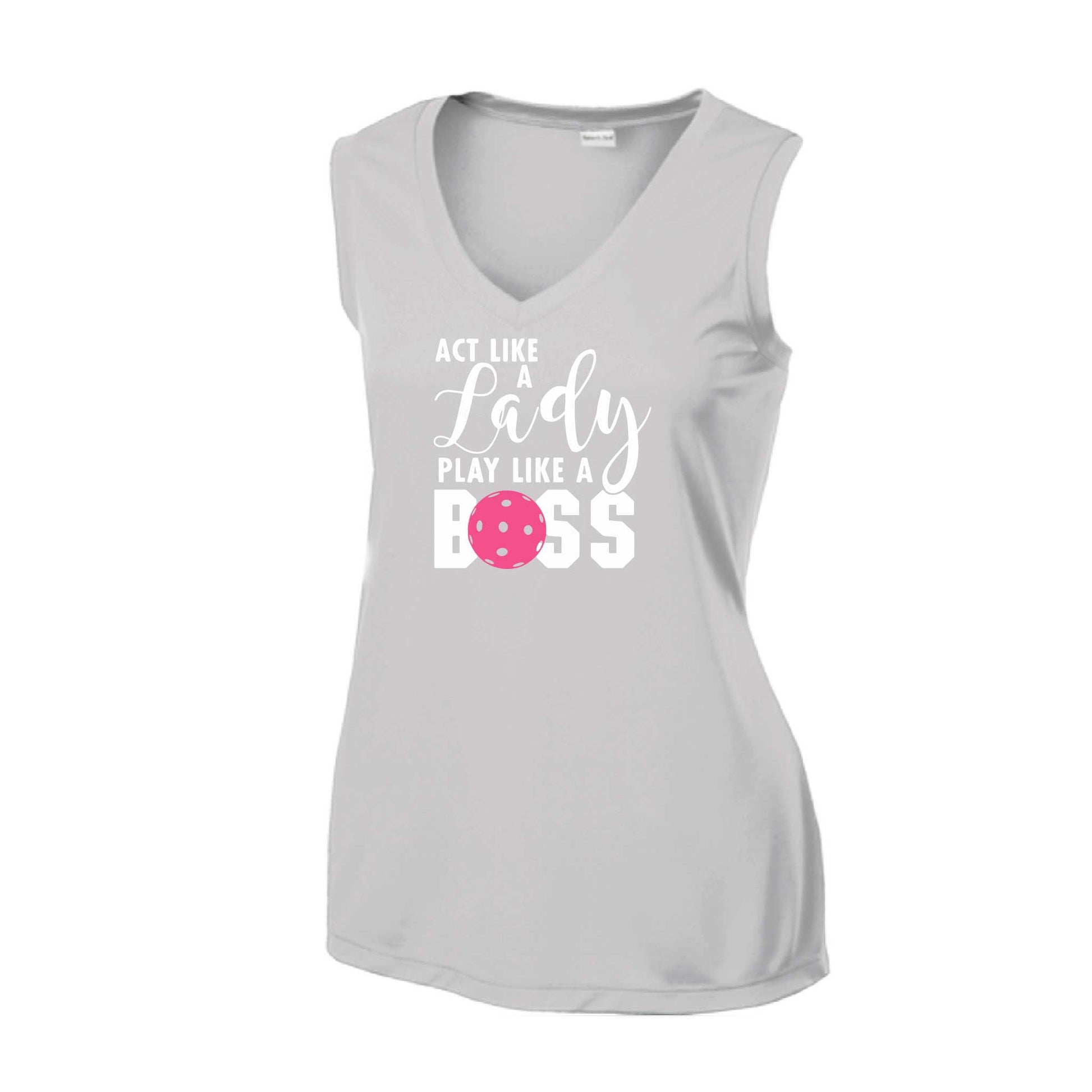 Act Like A Lady Play Like A Boss | Women’s Sleeveless Athletic Pickleball Performance T-Shirt | 100% Polyester