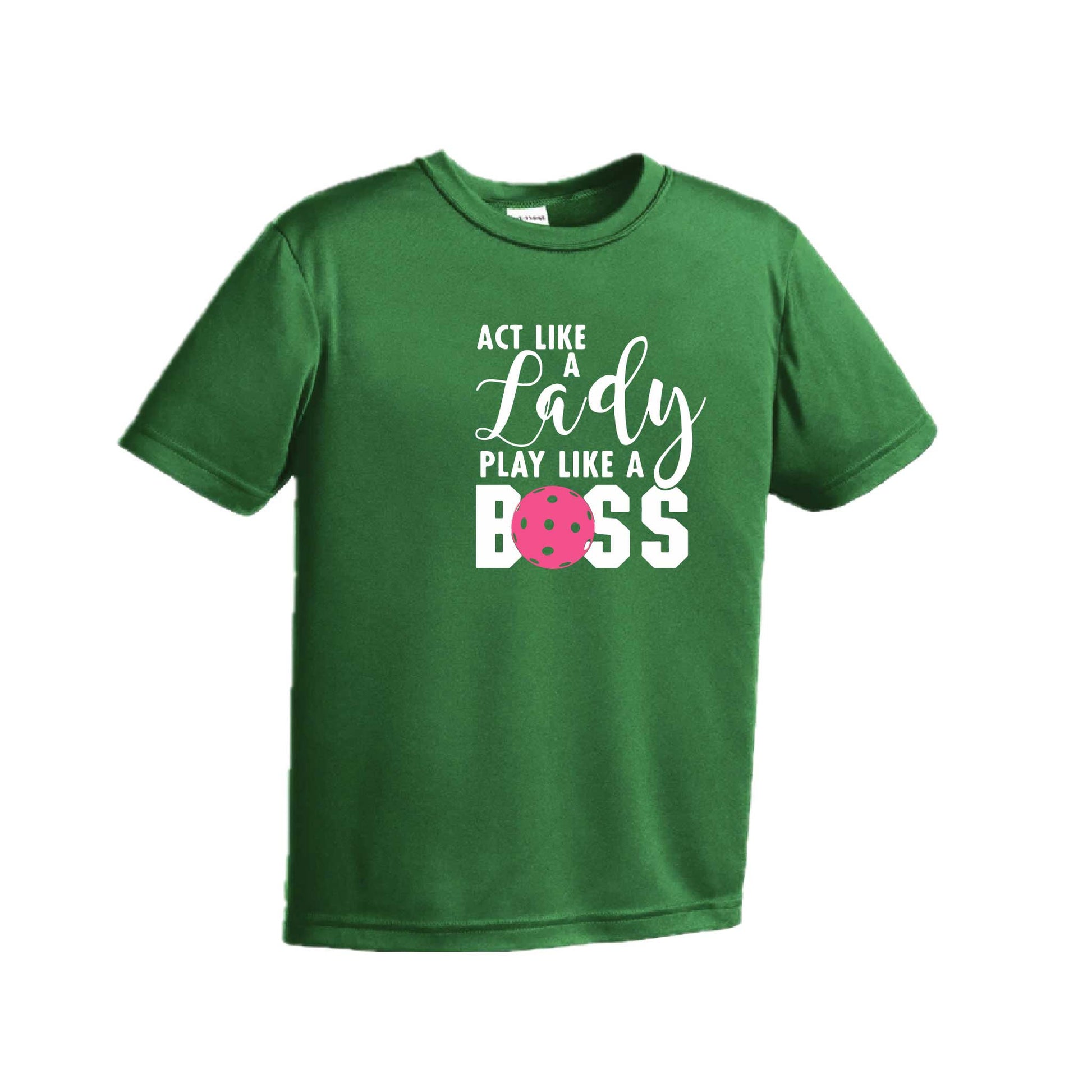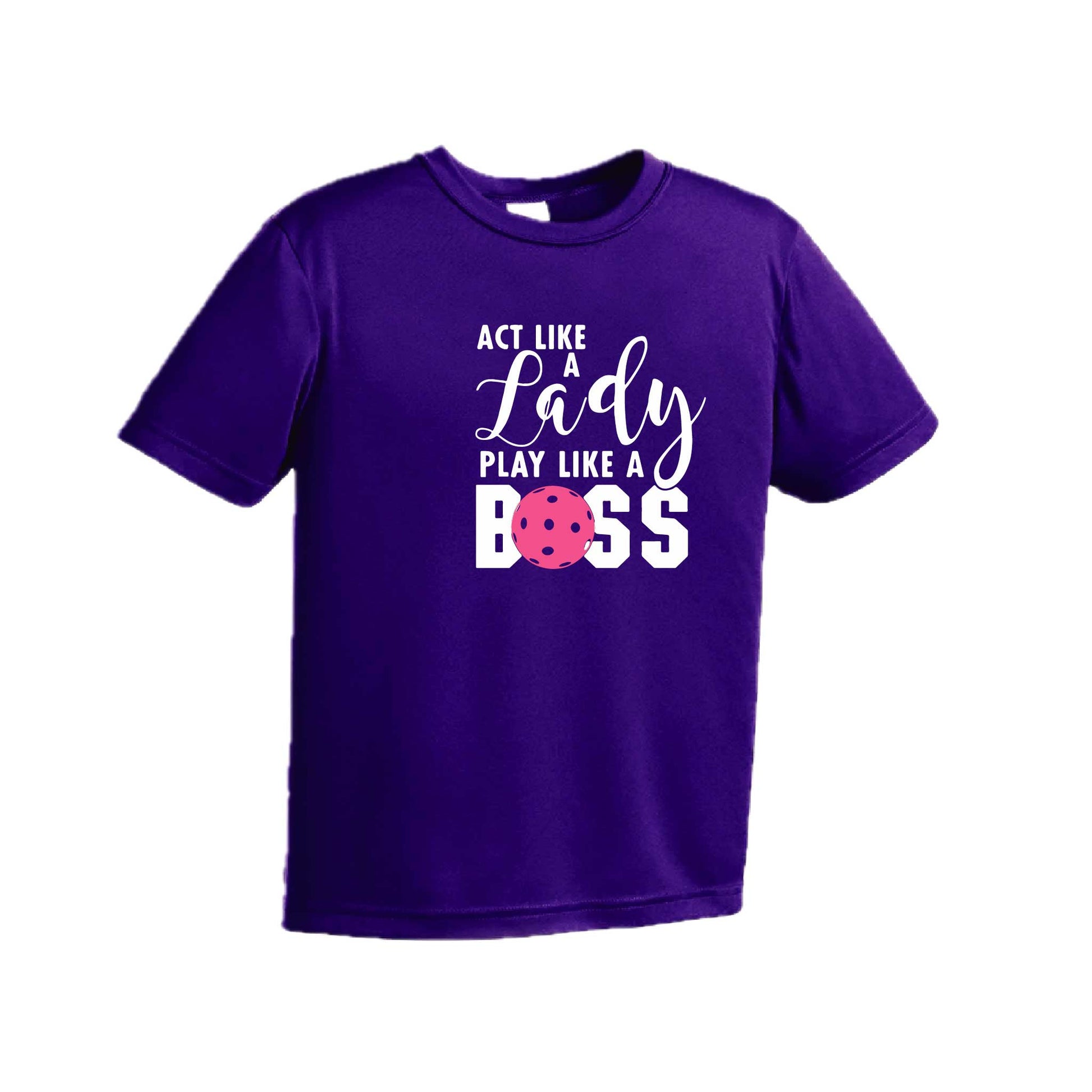 Act Like A Lady Play Like A Boss | Youth Short Sleeve Pickleball Performance T-Shirts | 100% Polyester