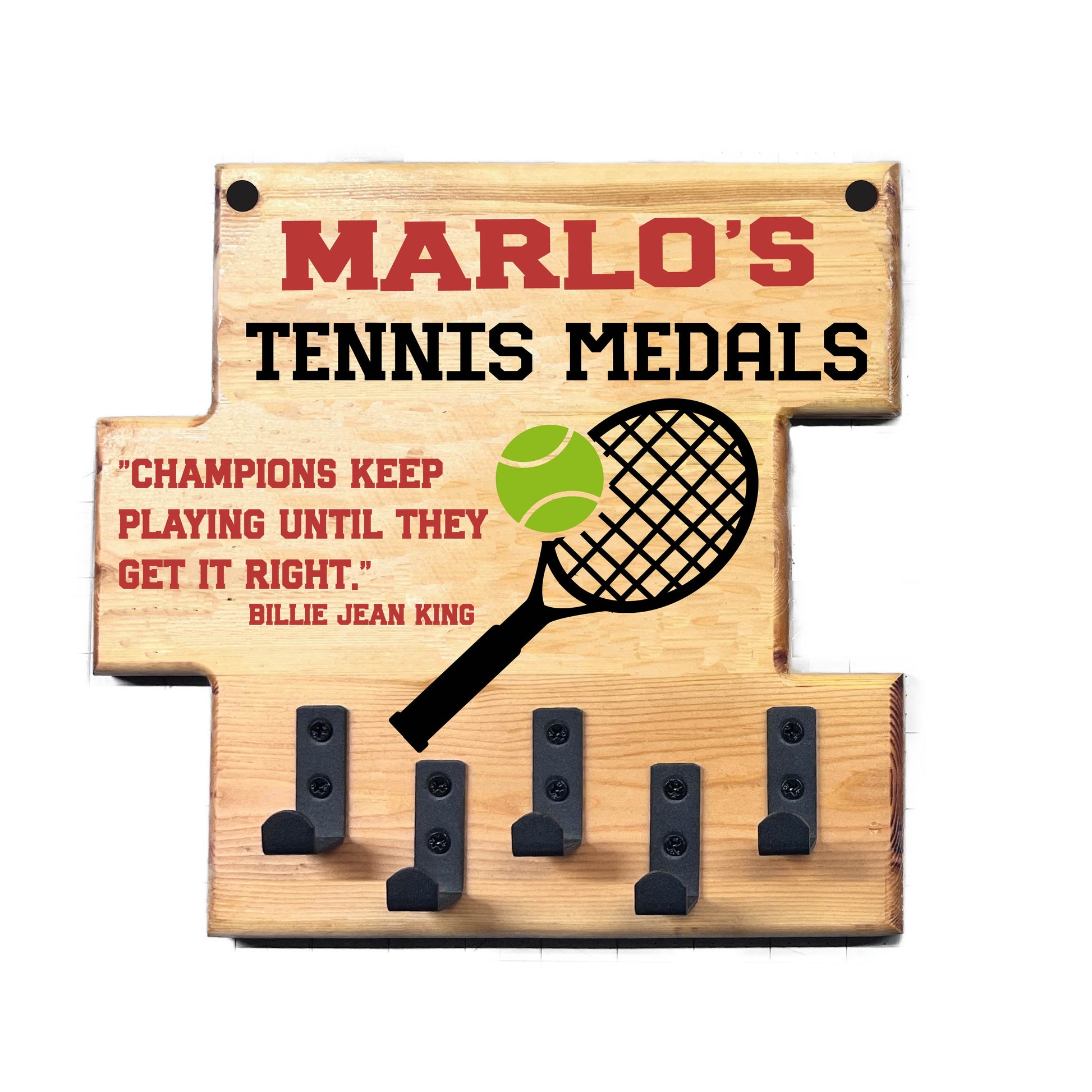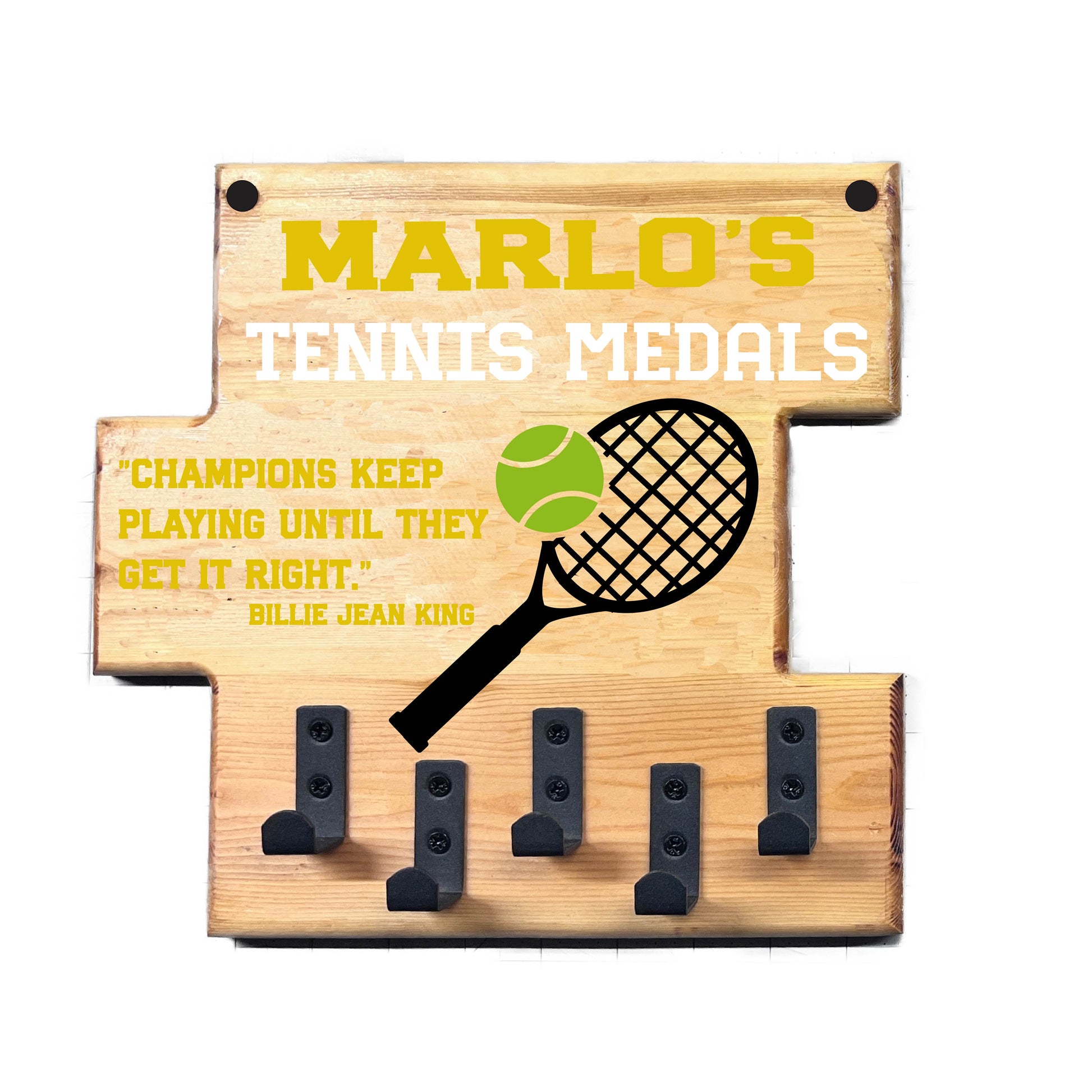 Custom Tennis "Champions Keep Playing Until They Get It Right" Trophy Display Rack | Sports Tournament Award Hanger