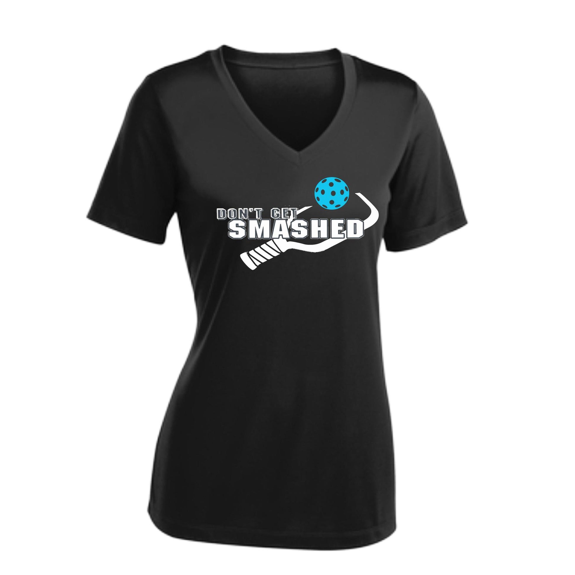 Don't Get Smashed (10 Custom Pickleball Colors) | Women's Short Sleeve V-Neck Pickleball Performance T-Shirts | 100% Polyester