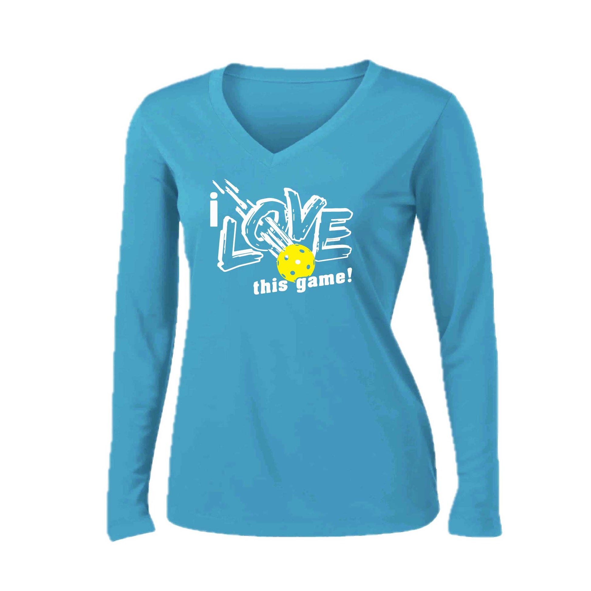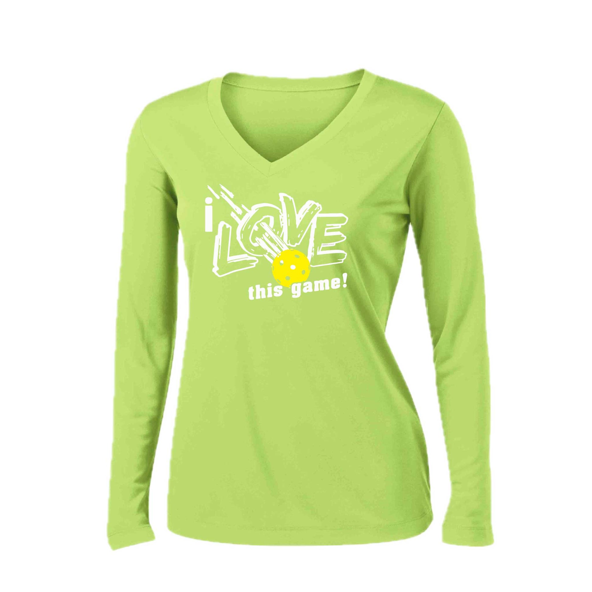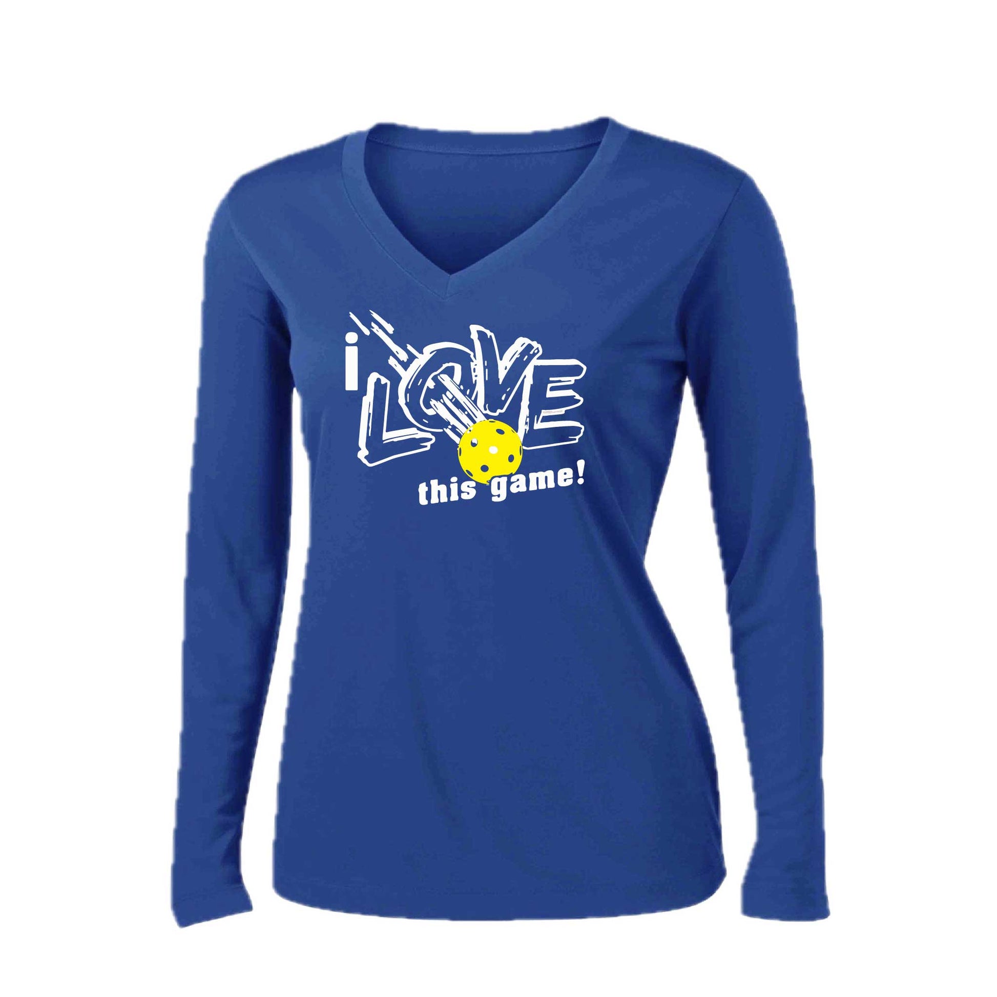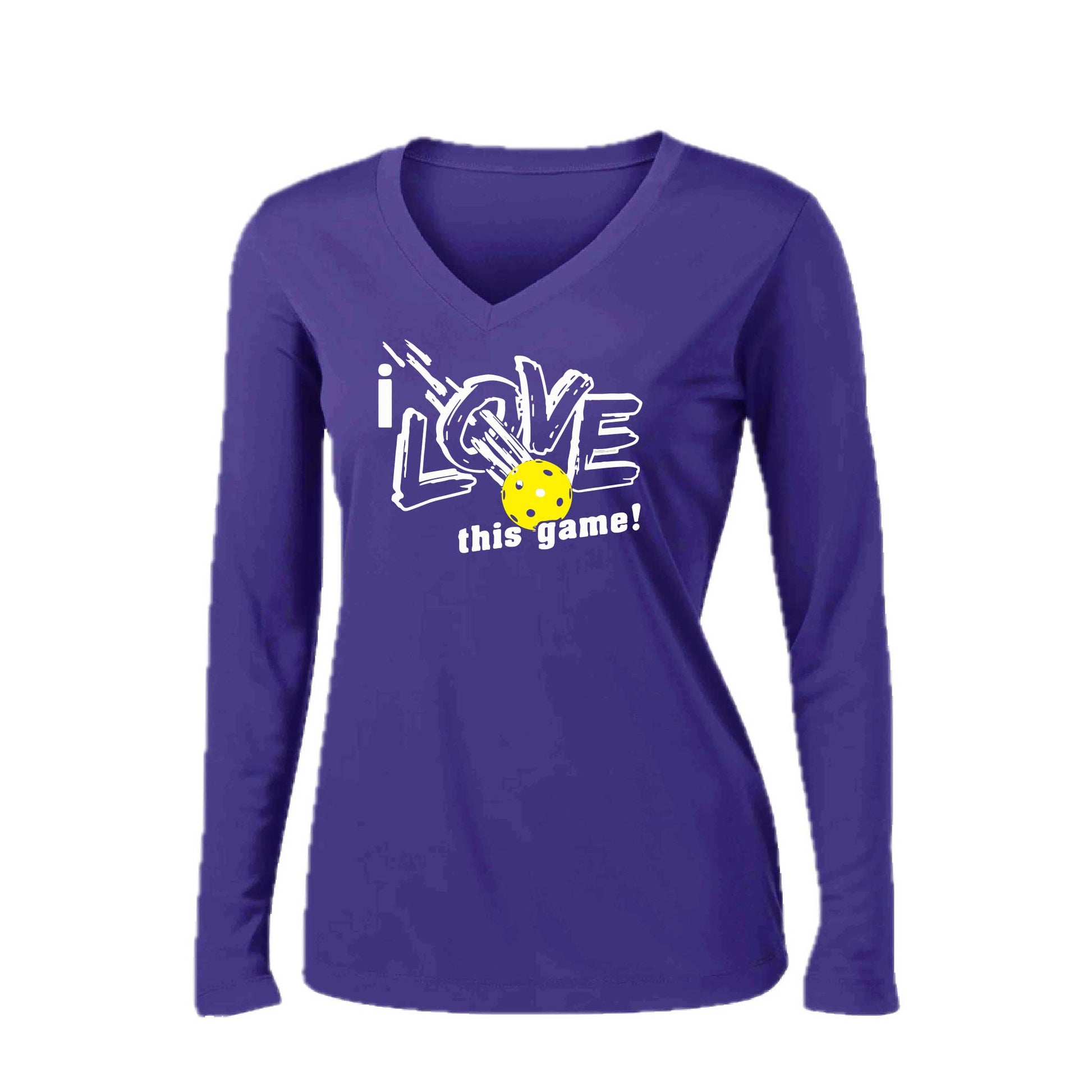 I Love This Game | Women’s Long Sleeve V-Neck Pickleball Performance T-Shirt | 100% Polyester