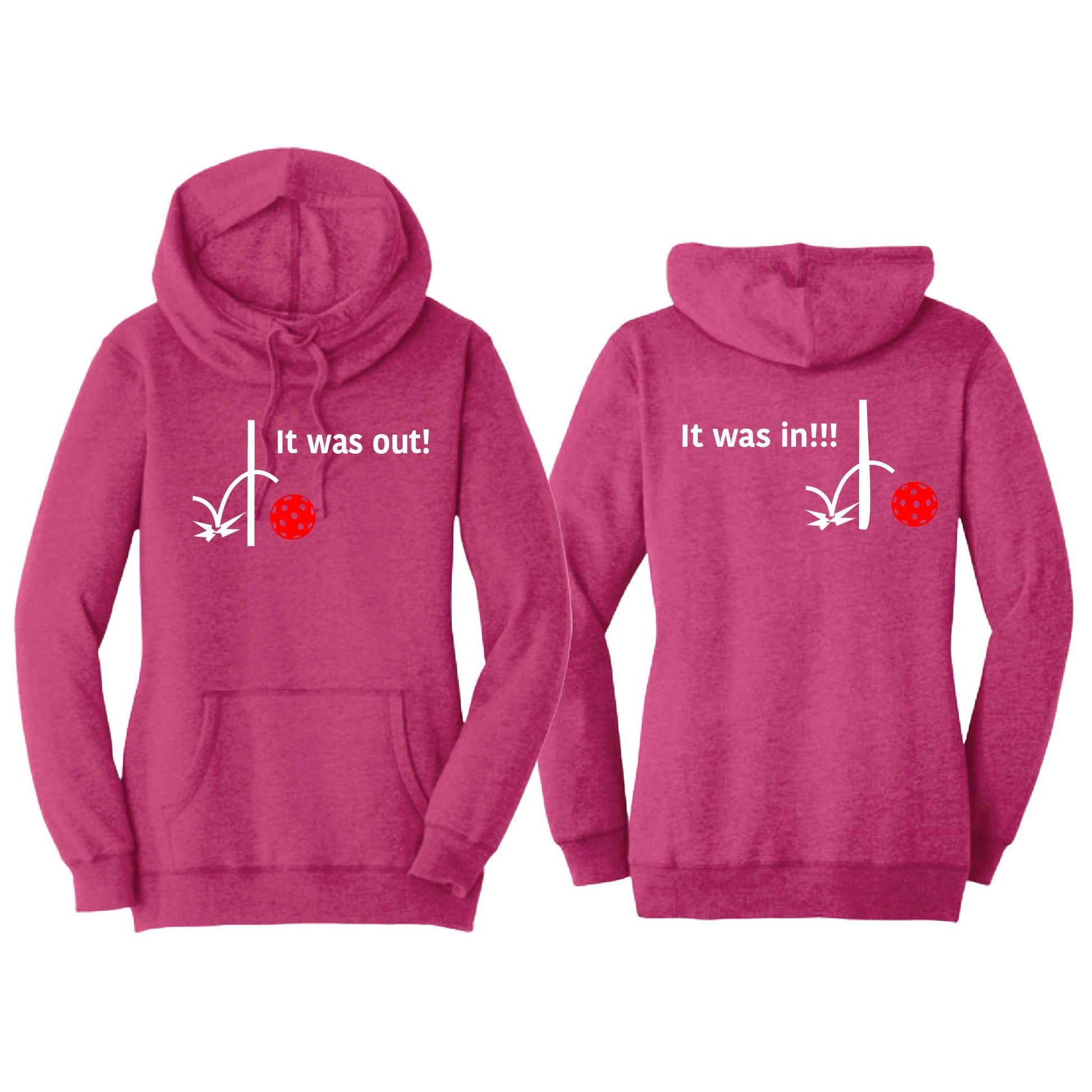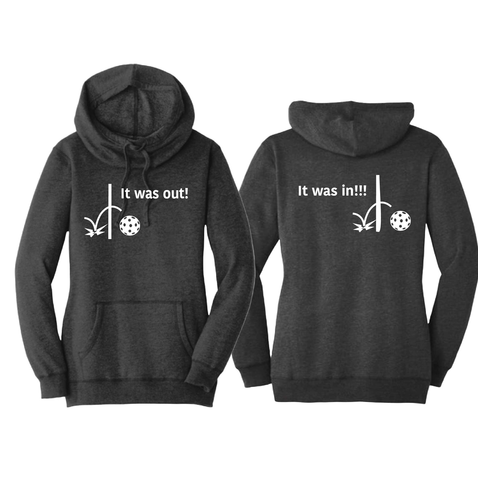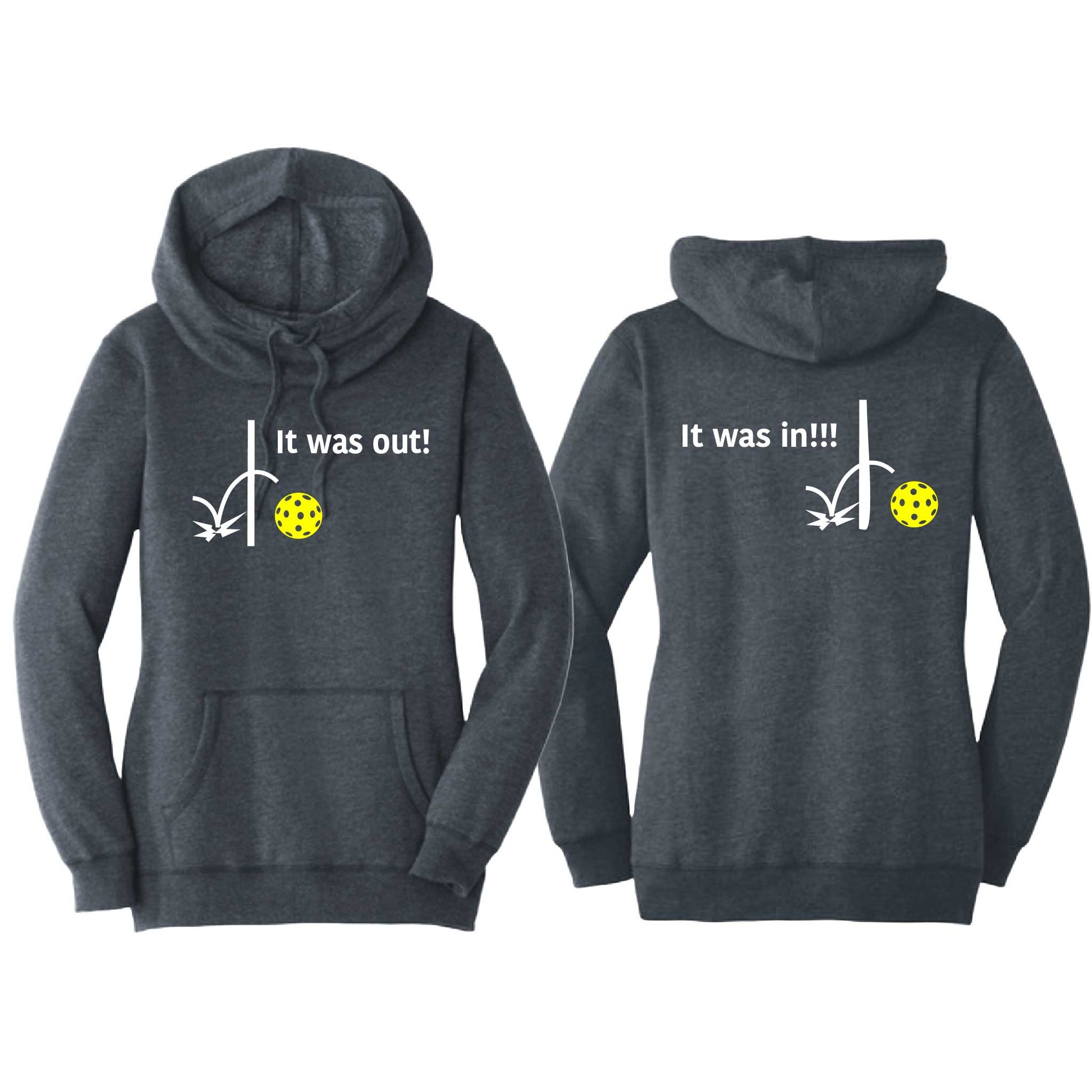 It Was In!!! It Was Out!!! (Pickleballs Red White Yellow) | Women’s Cowl-Neck Hoodie Pickleball Sweatshirt | 55% Cotton 45% Poly Fleece