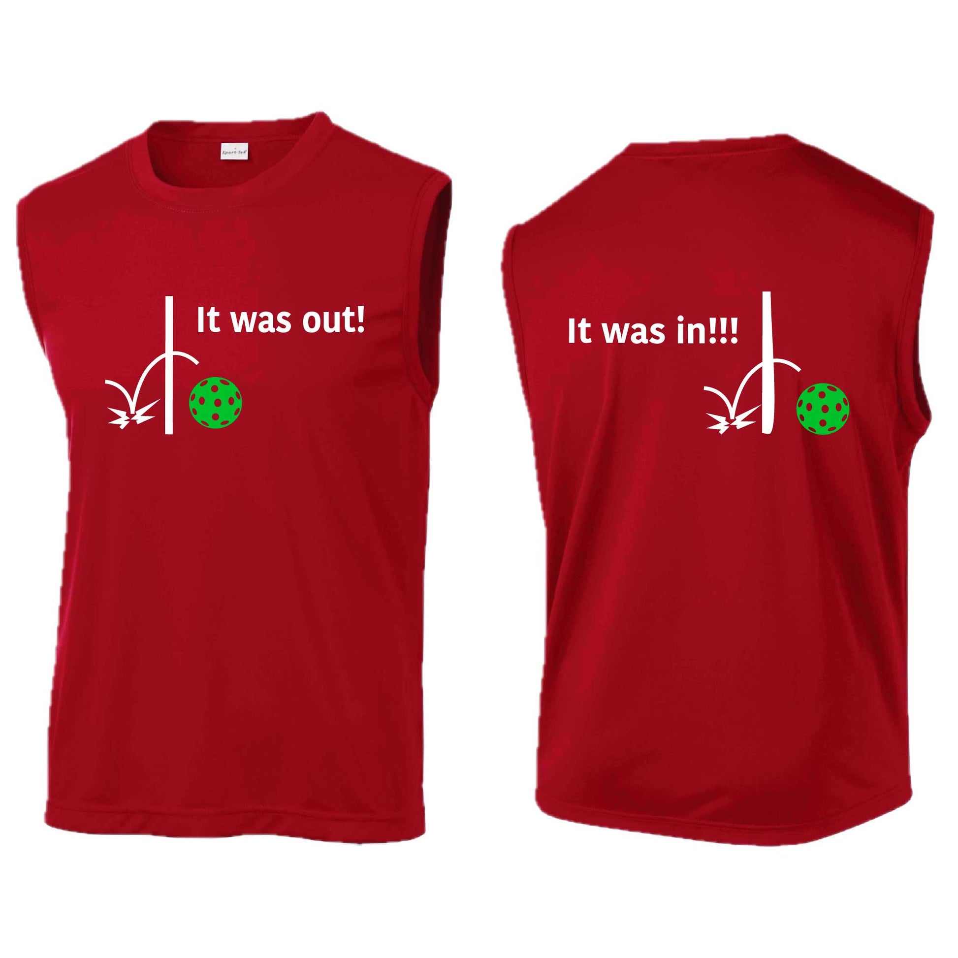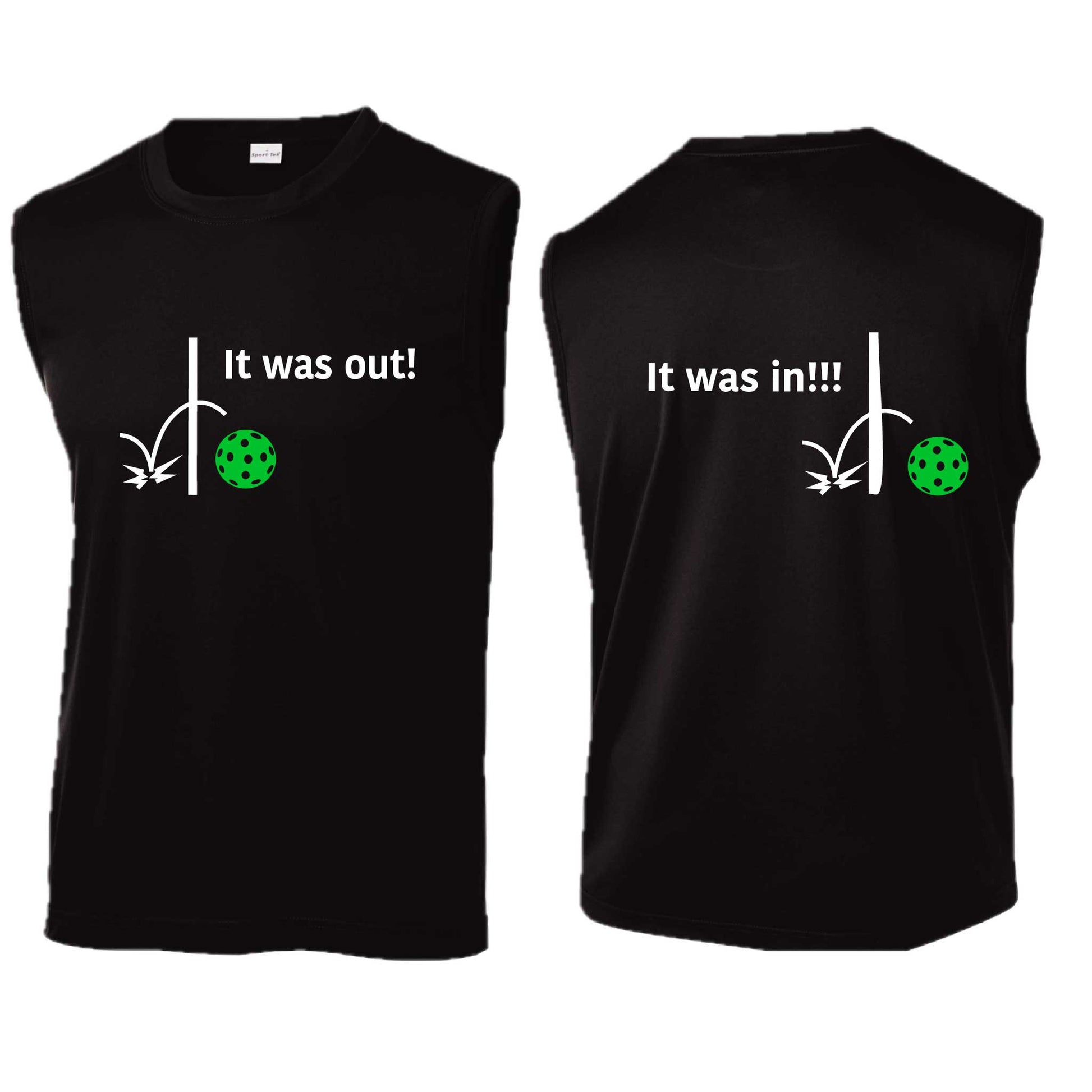 It Was Out! It Was In! (Pickleballs Cyan Green Orange) | Men's Sleeveless Athletic Performance T-Shirt | 100% Polyester