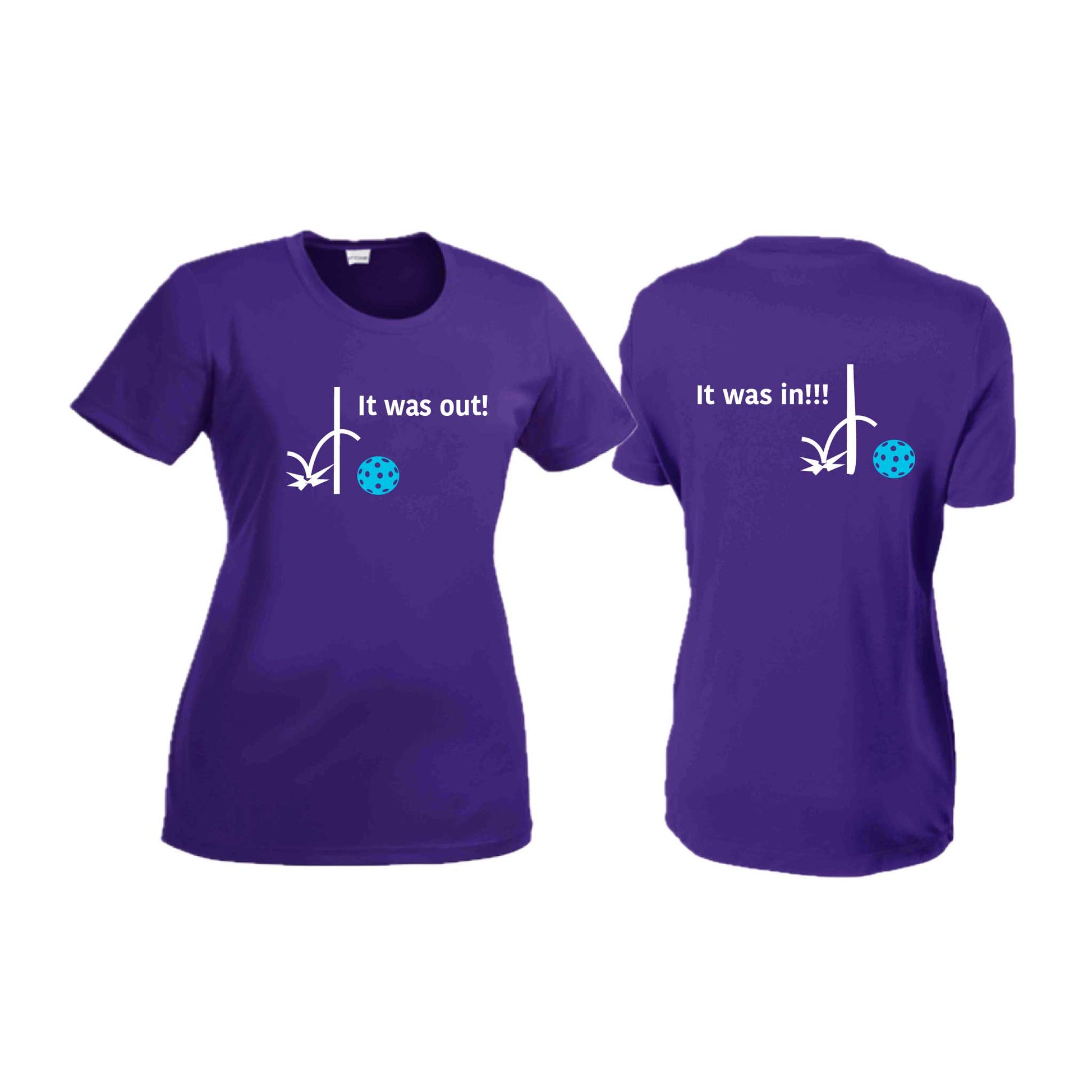 It Was Out! It Was In! (Pickleballs Cyan Green Orange) | Women’s Short Sleeve Crewneck Pickleball T-Shirts | 100% Polyester