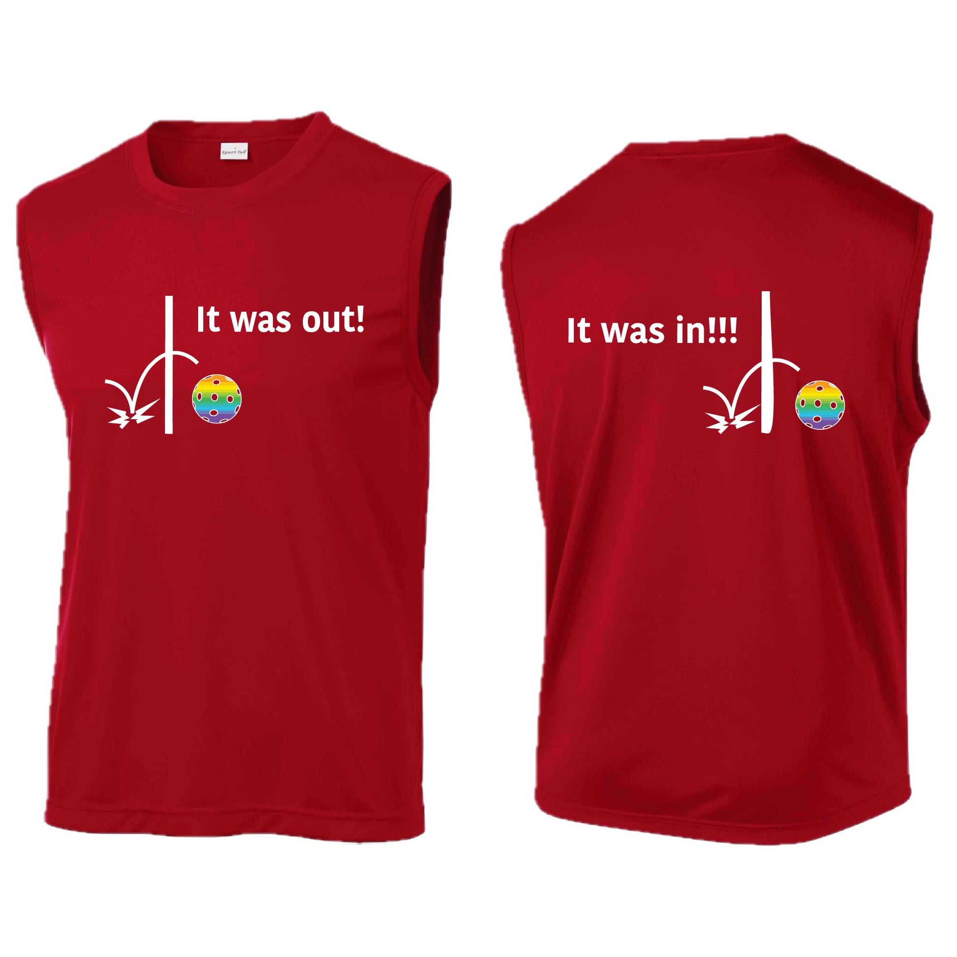 It Was Out! It Was In! (Pickleballs Pink Purple Rainbow) | Men's Sleeveless Athletic Performance T-Shirt | 100% Polyester