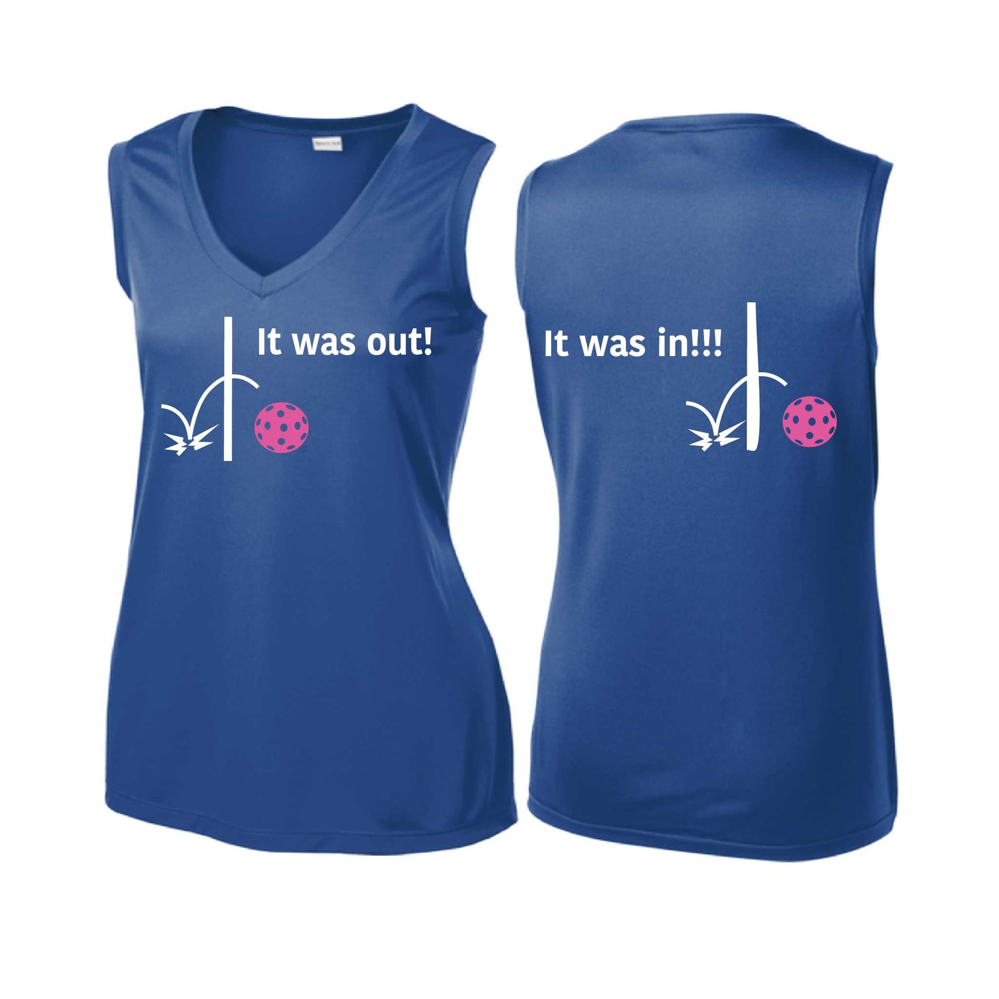 It Was Out! It Was In! (Pickleballs Pink Purple Rainbow) | Women’s Sleeveless Athletic Performance T-Shirt | 100% Polyester