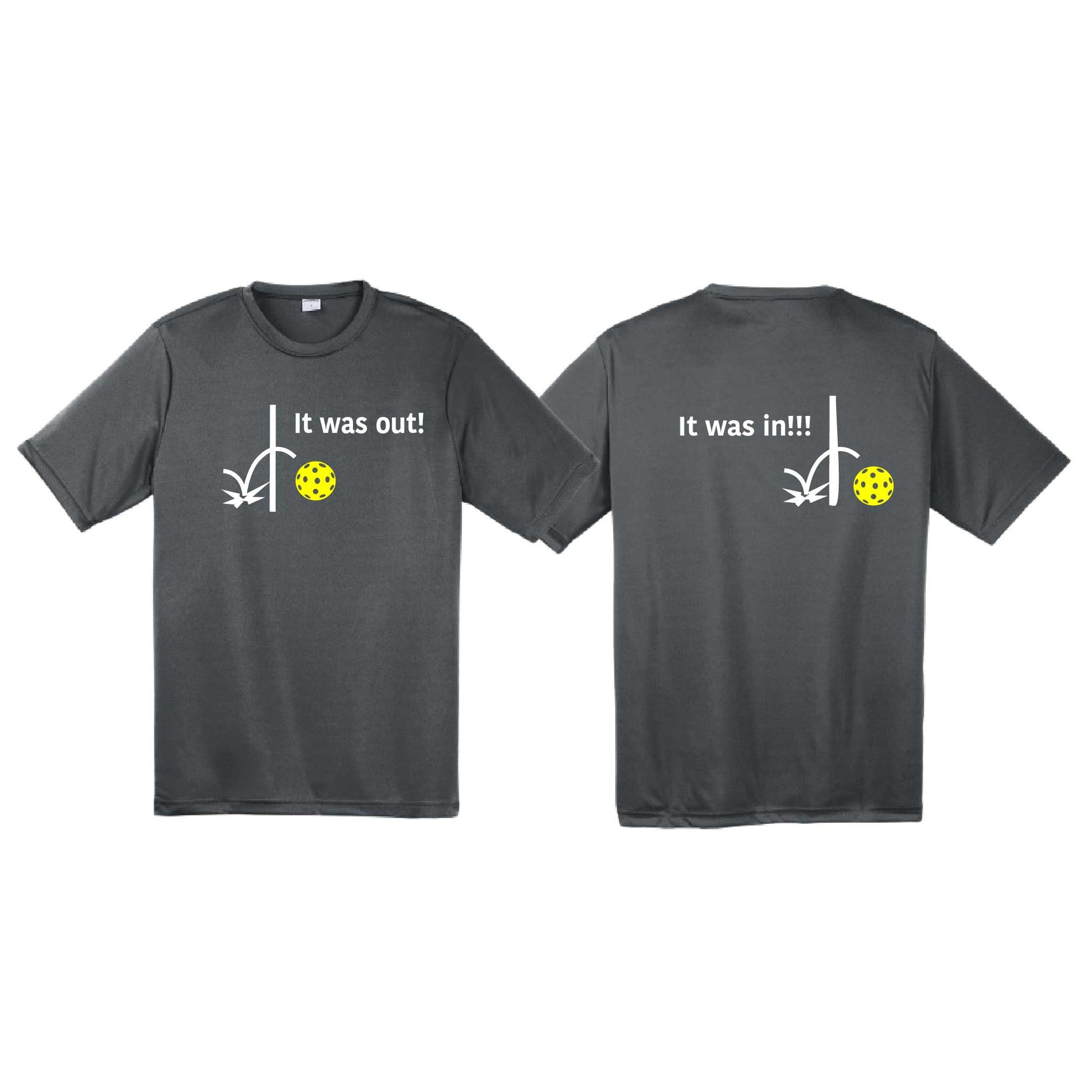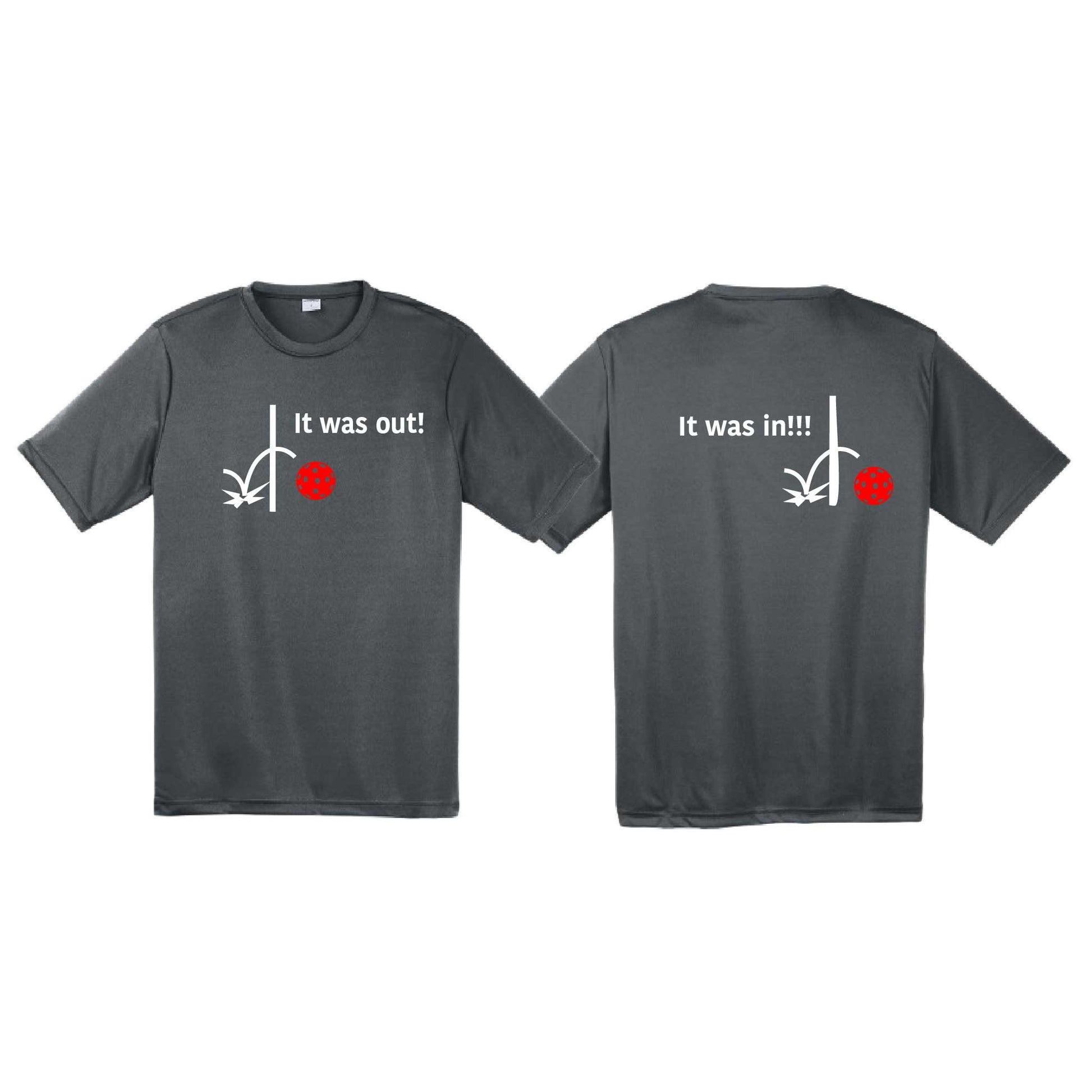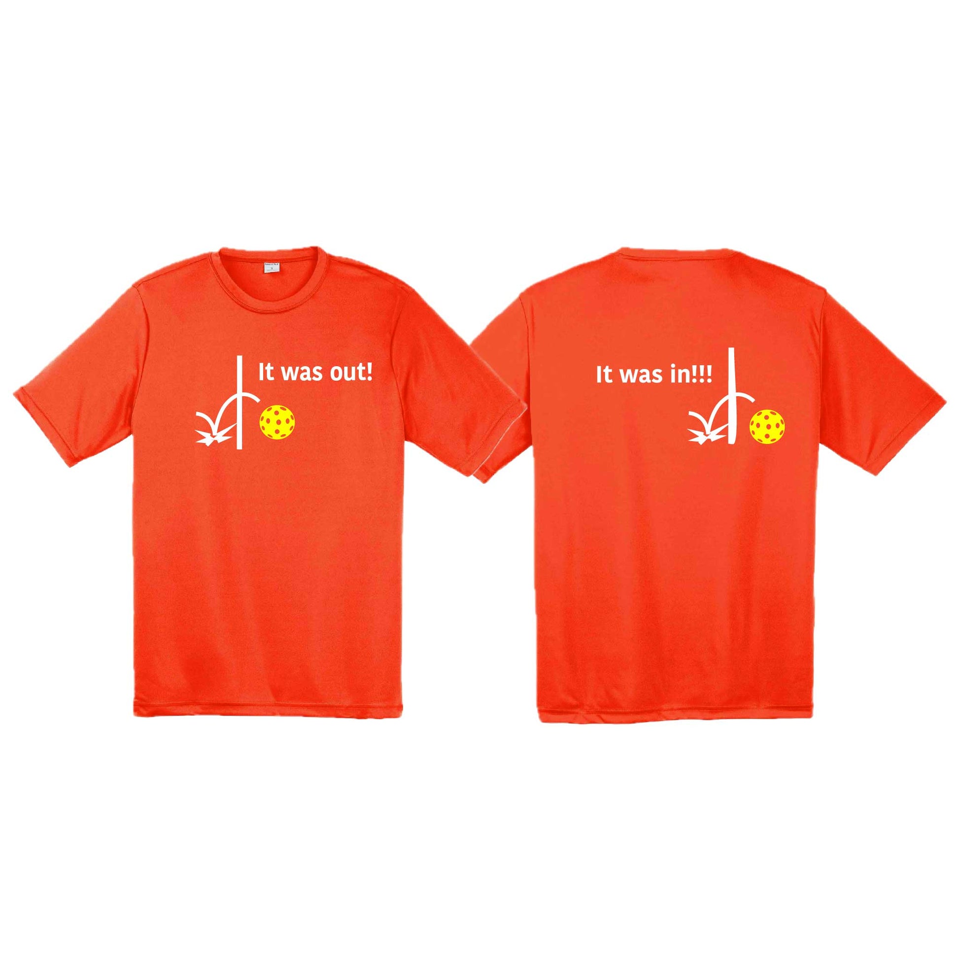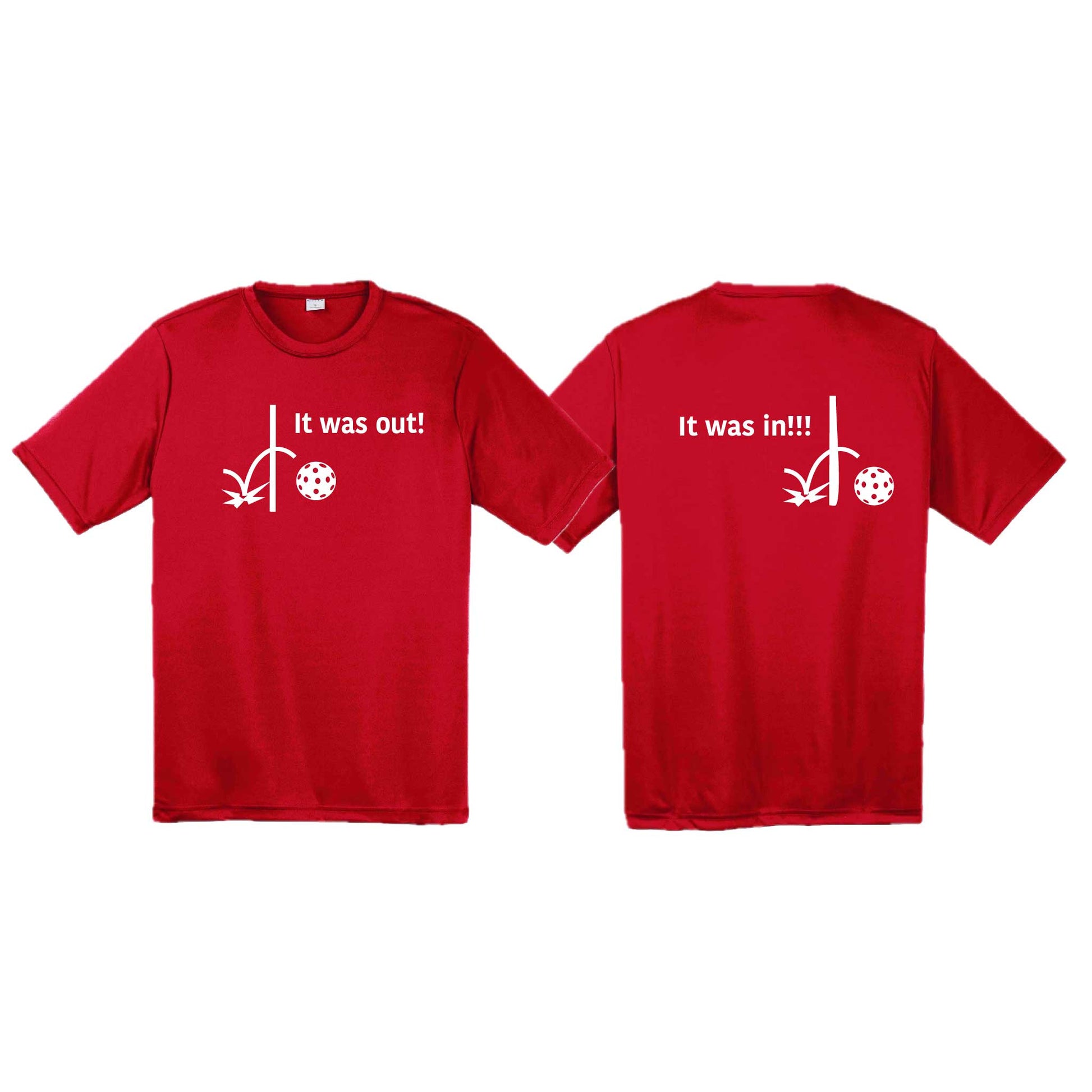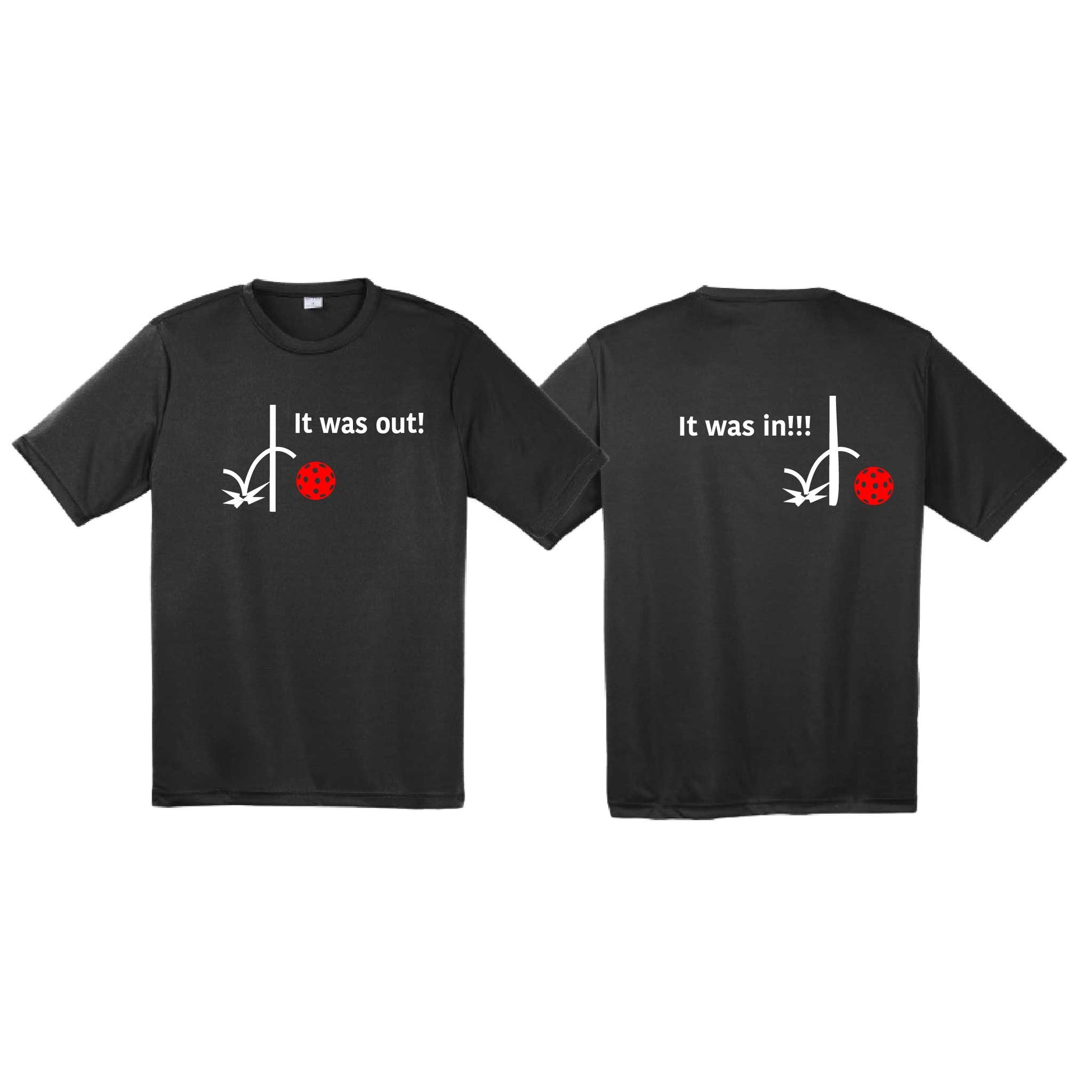 It Was Out! It Was In! (Pickleballs Red White Yellow) | Men's Short Sleeve Athletic Performance T-Shirt | 100% Polyester