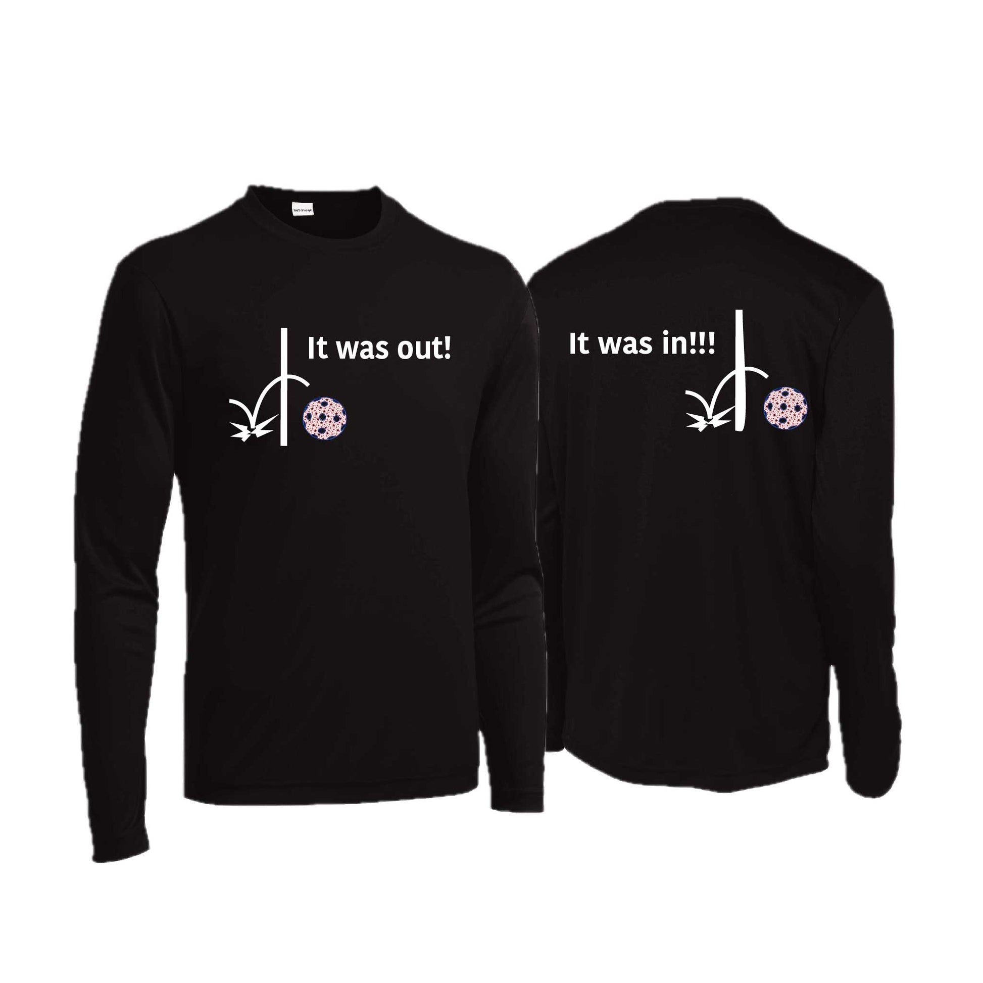 It Was Out! It Was In! (Pickleballs Patriotic Stars) | Men's Long Sleeve Performance Athletic Performance T-Shirt | 100% Polyester