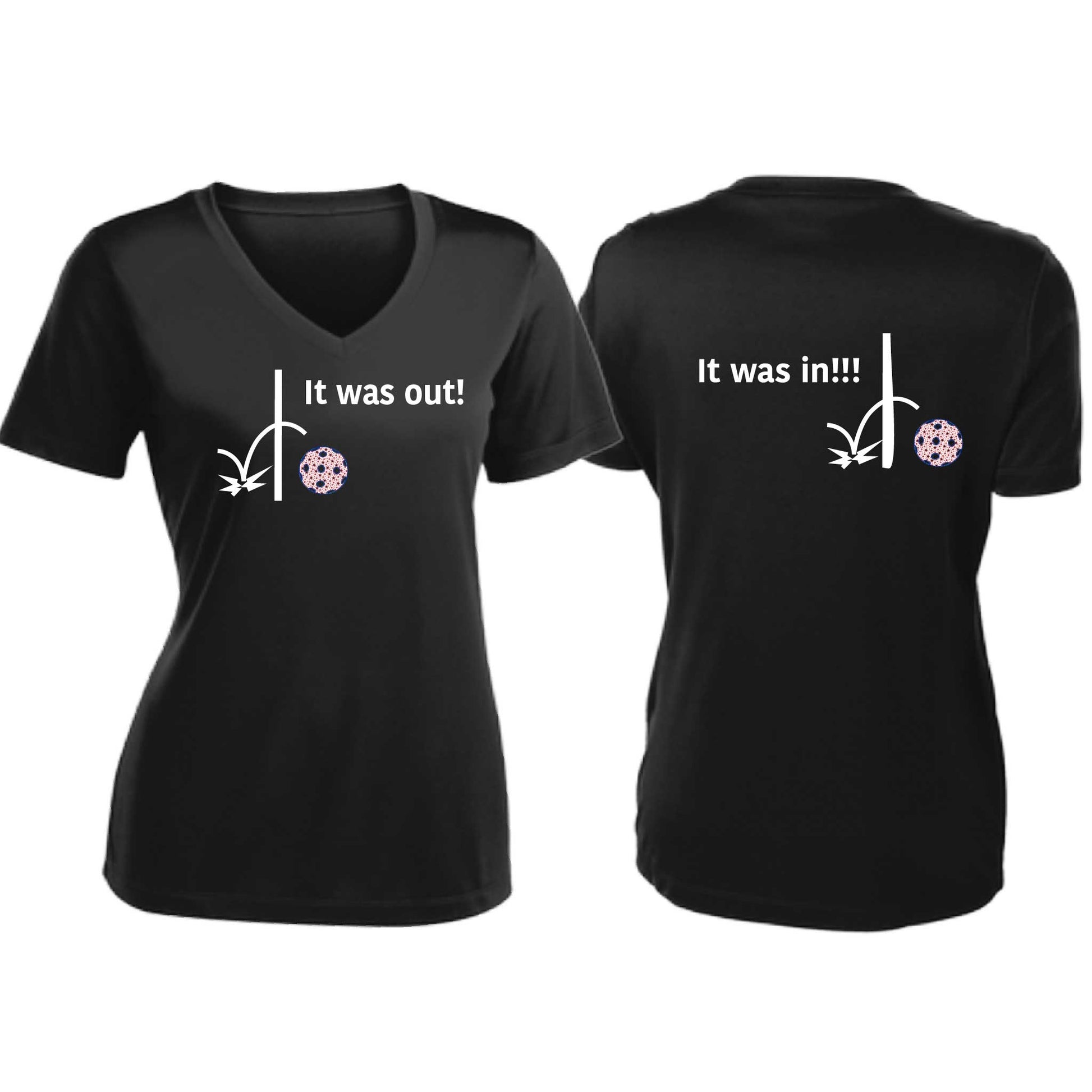 It Was Out! It Was In! (Pickleballs Patriotic Stars) | Women's Short Sleeve V-Neck Pickleball T-Shirts | 100% Polyester