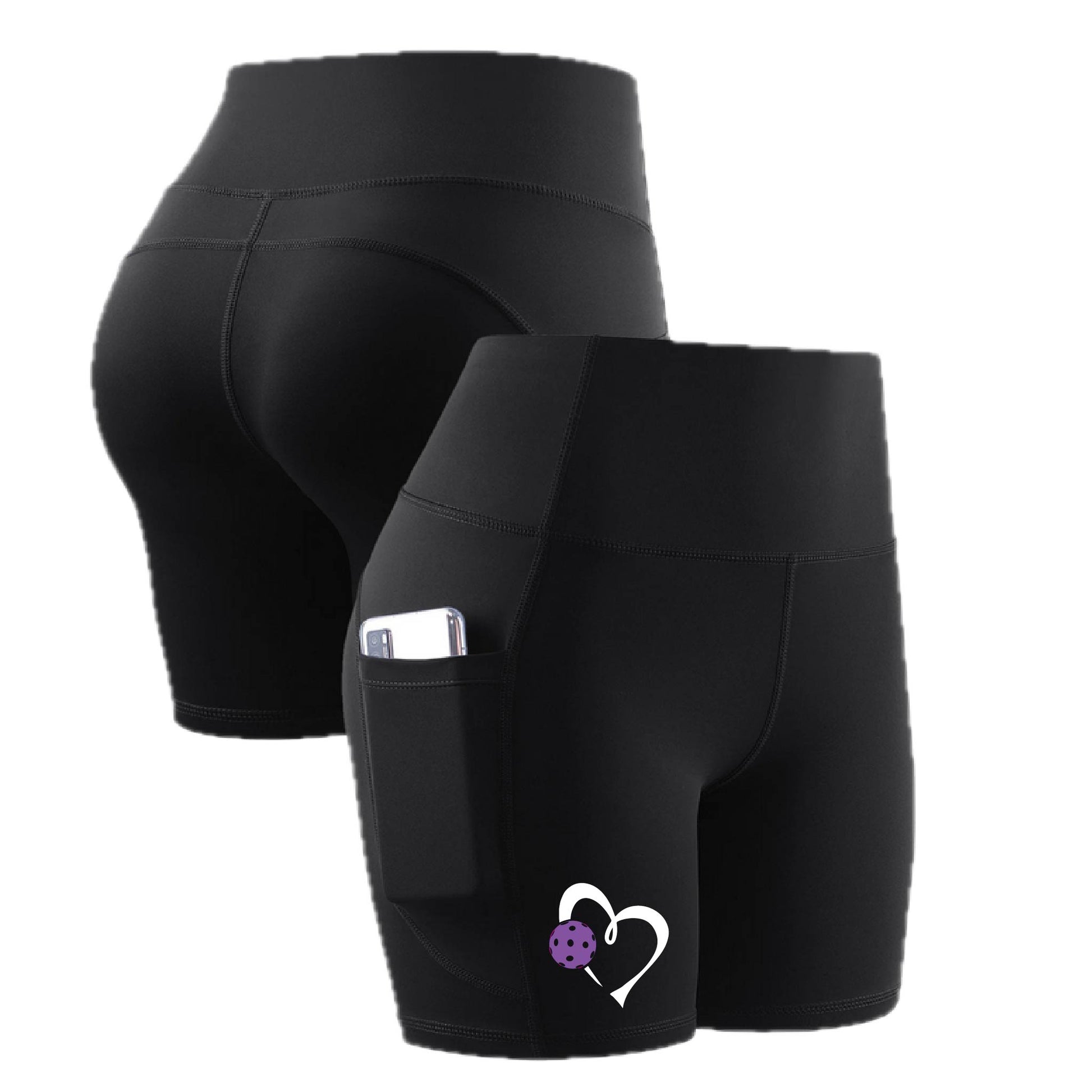 Love Pickleball (Purple) | Women's Athletic Compression Shorts | 85/15 Polyester/Spandex