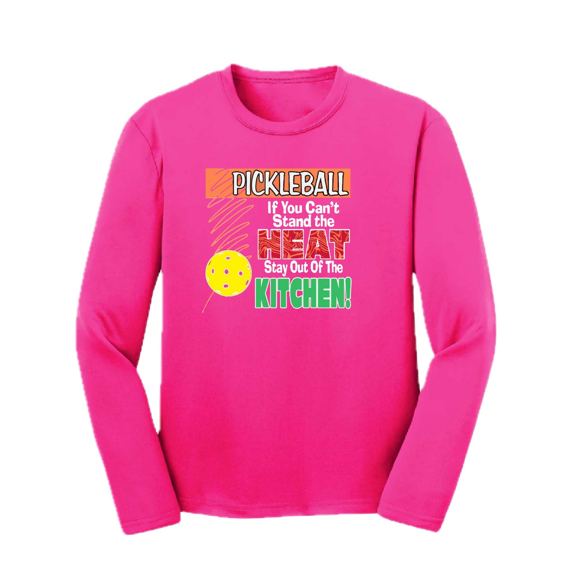 Pickleball If You Can't Stand the Heat Stay Out of the Kitchen | Youth Long Sleeve Pickleball Performance T-Shirts | 100% Polyester