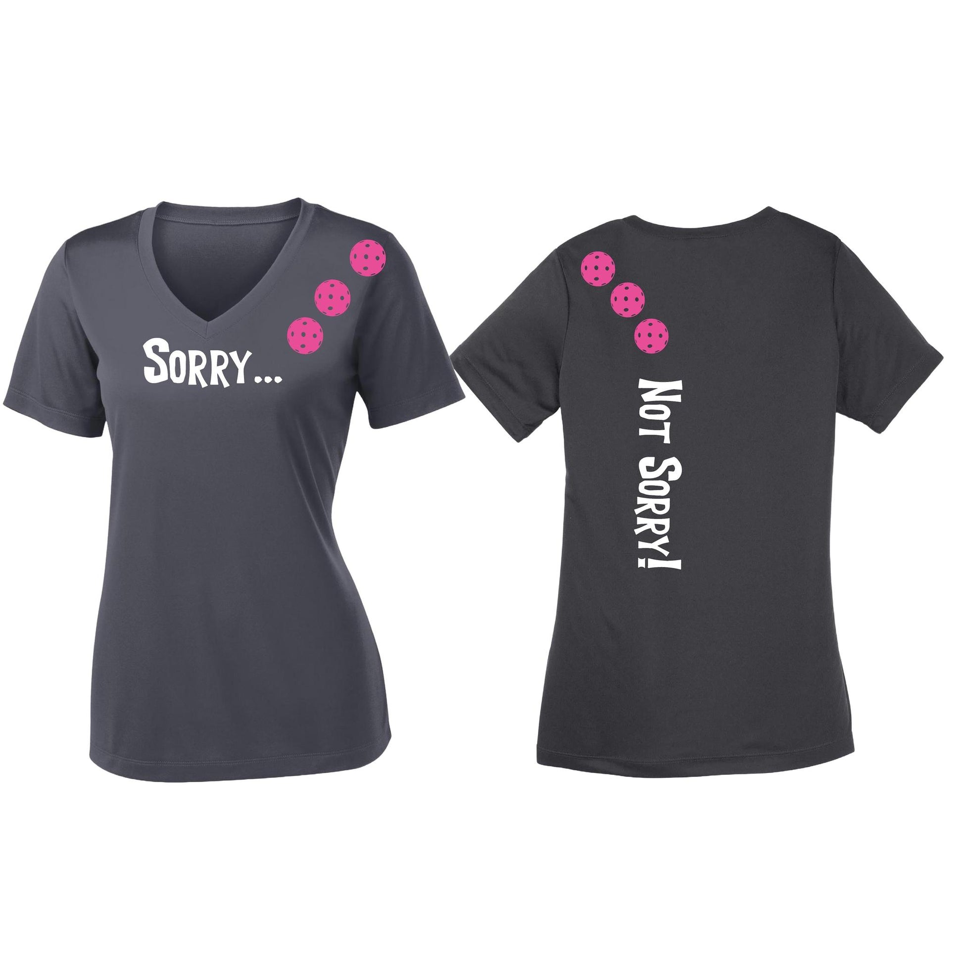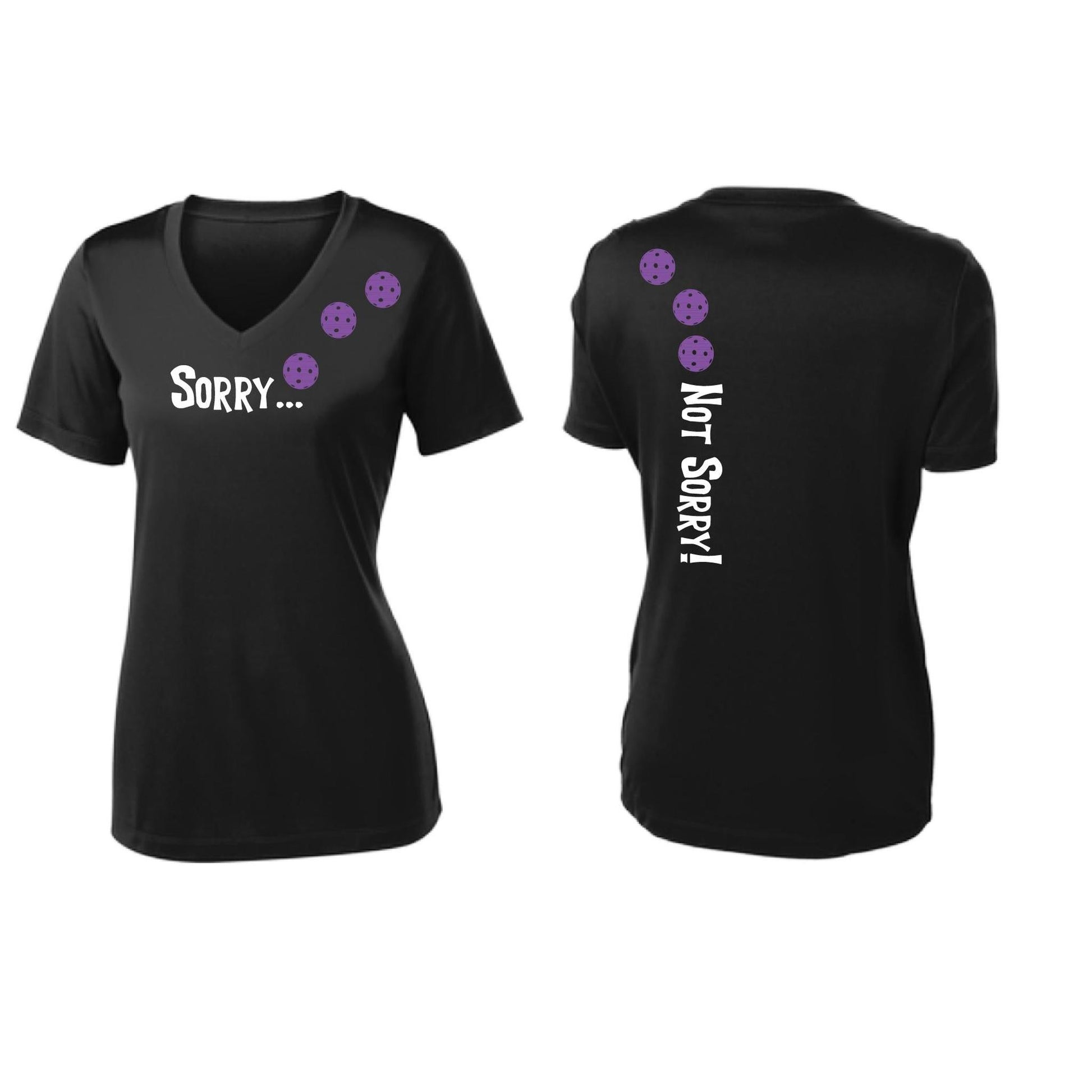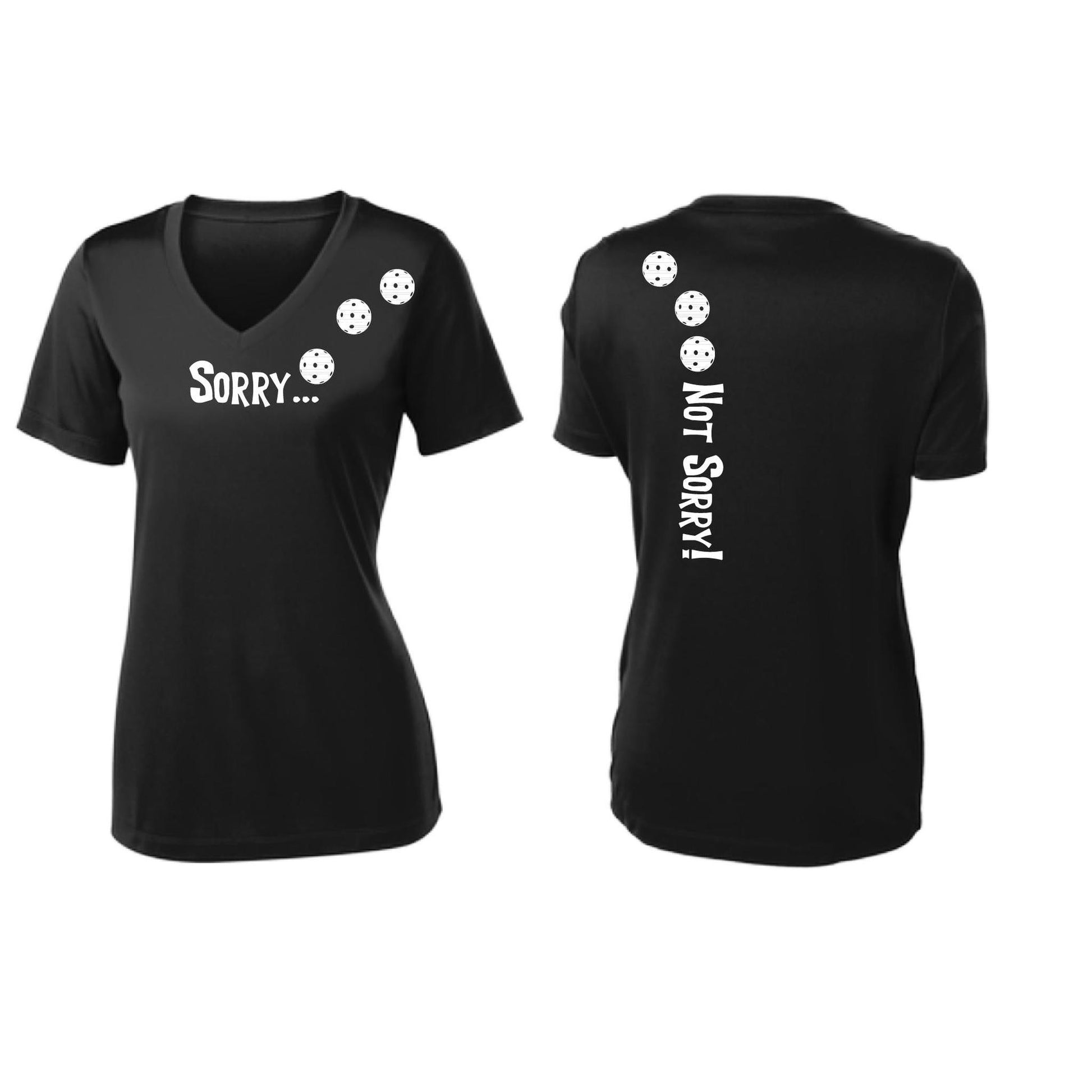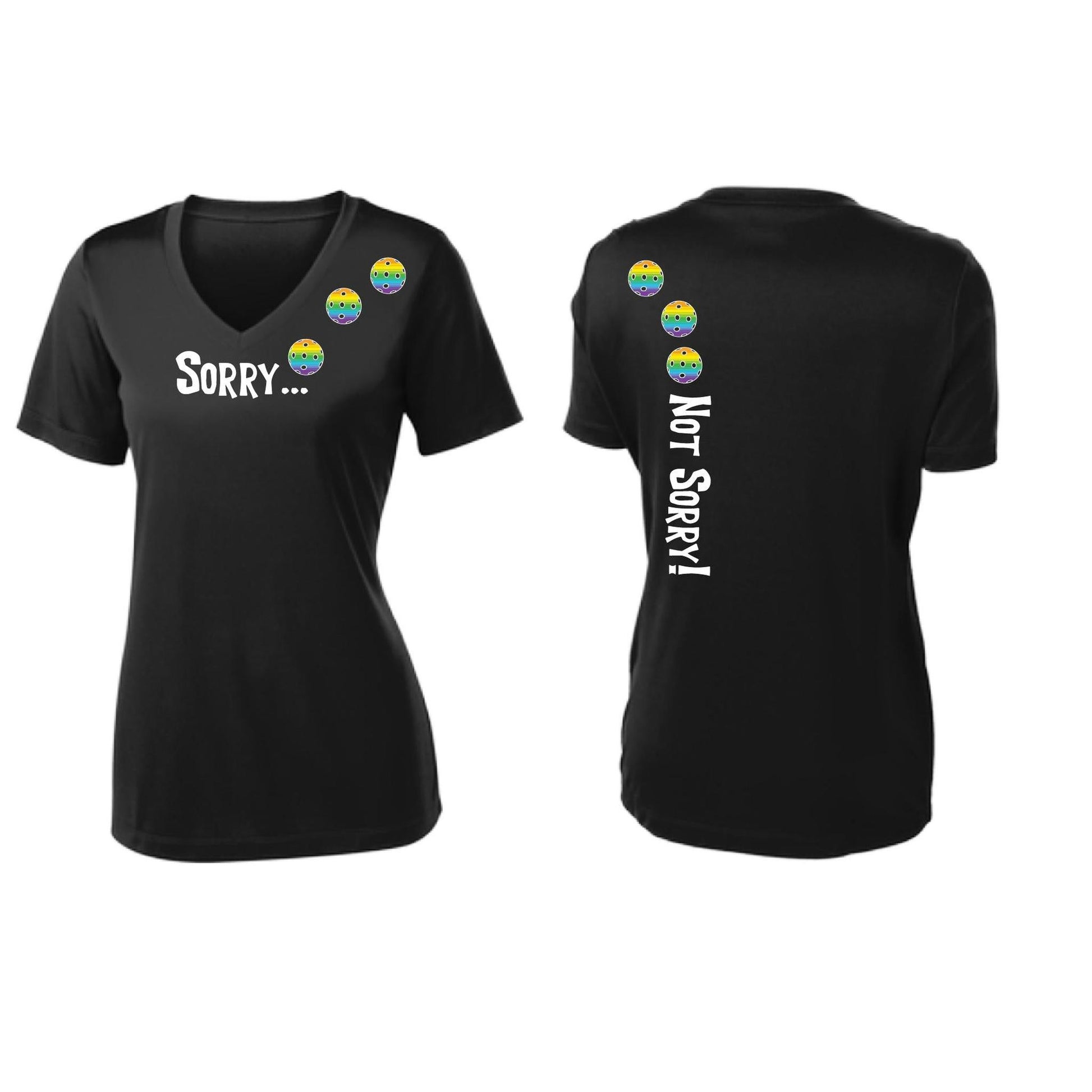 Sorry Not Sorry (Customizable 10 Pickleball Colors) | Women's Short Sleeve V-Neck Pickleball Performance T-Shirts | 100% Polyester
