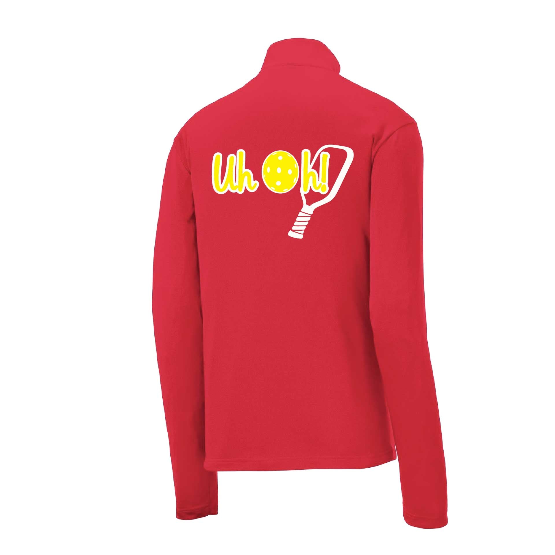 Uh Oh! | Men's 1/4 Zip Long Sleeve Pullover Athletic Pickleball Performance Shirt | 100% Polyester